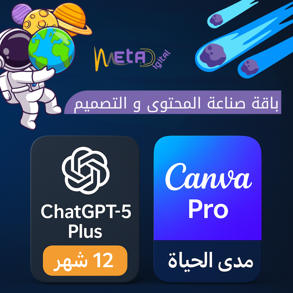 حزمة ChatGPT-5 Plus السنوية + Canva Pro Lifetime | أقوى بكج للذكاء الاصطناعي والتصميم
